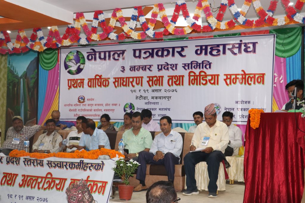 प्रकाशितः 4, July नेपाल पत्रकार महासंघ ३ नम्बर प्रदेश समितिको प्रथम साधारणसभा तथा मिडिया सम्मेलन हेटौंडामा मिति २०७६ असार १८ र १९ गते सम्पन्न भयो । महासचिव कृष्ण सारुमगरको प्रतिवेदन